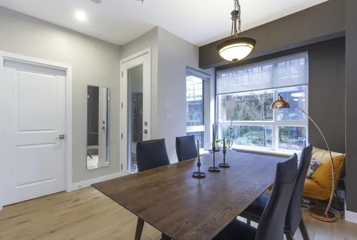Set along the Estuary Trail in a quiet, pocket of downtown, this spacious four-bedroom, 2.5-bathroom townhouse is perfectly suited for family living. The main level offers bright, open-concept living with a galley kitchen ideal for everyday life and entertaining. Recent updates include a new dishwasher, hood fan, hardwood flooring on the main level, and new carpet in ares. A bonus loft bedroom adds excellent flexibility. Includes two parking stalls and storage locker, all just steps from trails.