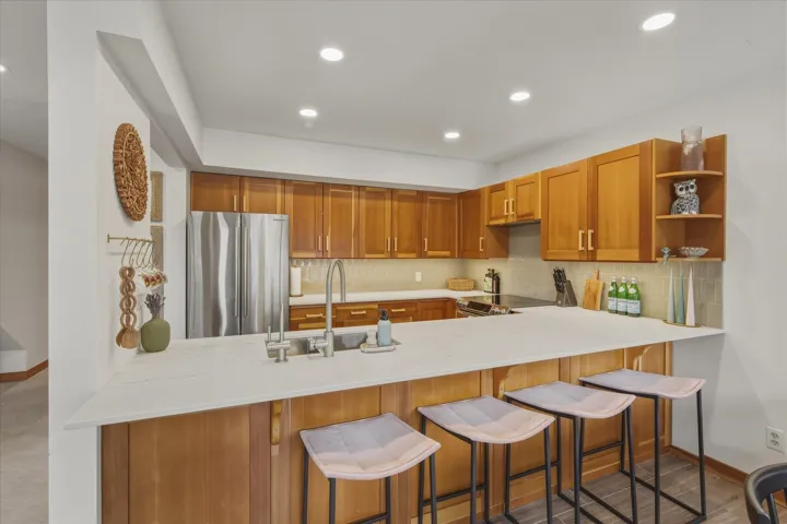 Rare opportunity – Eagle Ridge townhome #32 is top-floor and perched high in Whistler Cay Heights with coveted views of Blackcomb Mountain. Inside feels serene, light and bright with refreshing and thoughtful renovations of a perfect palette featuring an upgraded kitchen and bathrooms, heated tiles, air conditioning, Dekton counters, floor to ceiling windows, meticulously cared for waxed cedar and four skylights ushering in sunshine. With three bedrooms (two plus den), two bath, two assigned parking stalls (one underground and one open), a private gear locker, a ski closet, wood-burning fireplace and two sun decks with views – you couldn’t ask for more! Tennis & pickle ball too! Walk to Whistler Village, golf, the ski hill, restaurants and shops. Make it yours before someone else does!