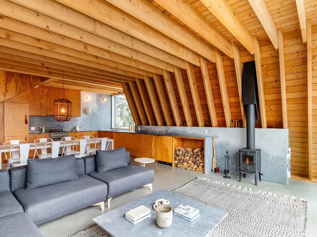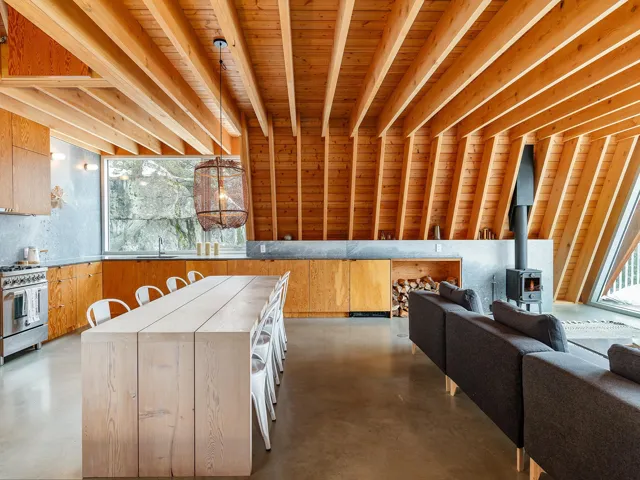 Set on a private, sun-filled lot, this 2.5 bedroom architectural A-Frame offers flexibility and room to grow. Expand on the existing design or add a carriage house with garage and independent suite—ideal for family or multi-generational living. Designed by Scott & Scott Architects, it features a soaring red cedar shake roofline anchored into bedrock, framing dramatic mountain views through bold Douglas Fir beams. Locally sourced materials, including marble counters from Vancouver Island’s Hisnet Inlet quarry, reflect enduring craftsmanship. With three levels, expansive outdoor living, firepit, and hot tub, this Cabin Porn-featured home is a timeless mountain retreat with space to evolve.
