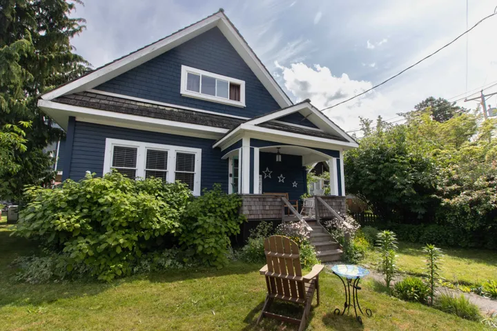 RARE property with TWO HOMES on one lot! Charming character home + new modern carriage home on a bright private 6000 SF corner lot in prime Downtown location. Unique original home situated on an angle w/Tantalus Range + Chief views, lots of original features, fir floors, front + back porches, top floor primary suite w/ wood posts + beams could separate into bedrooms. Carriage home by Bluewater: efficient floor plan, Chief + Smoke Bluff views, 2 bedrooms, 6 ft bathtub, attic storage, spacious deck, laundry/pantry. Single garage + carport doubles as shaded seasonal outdoor living space overlooking garden w/wisteria + gingko tree. Lots of options: revenue, live-in, convert original home. R-1 zoning guidelines. Steps to estuary, farmer’s market + all amenities. By appt.