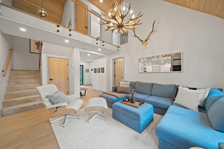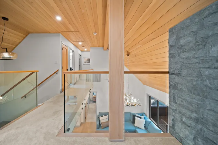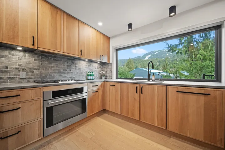 Fully reimagined duplex that lives like a single-family home, offering exceptional privacy with no shared walls and its own garage. Completely re-envisioned, blending modern mountain design with comfort and durability. Features include a metal roof with snow stops, cedar siding, new windows, composite decks, and exceptional outdoor living with a 7-person hot tub, BBQ hookup, and fire bowl. The interior has been structurally redesigned with vaulted ceilings, hemlock finishes, glass railings, a custom kitchen with oak cabinetry, quartz countertops, premium appliances, engineered oak floors, spa-inspired bathrooms with heated tile, and a striking 3-sided fireplace clad in Whistler basalt stone. Comfort is enhanced by a new heat pump, upgraded insulation, and new electrical and plumbing.