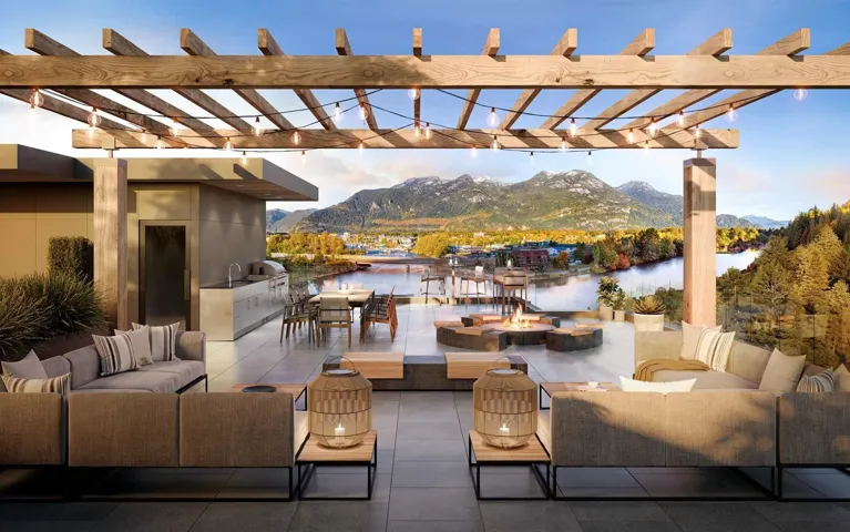 Live in style at Redbridge Squamish with this brand-new, fully furnished 2-bedroom + den, 2-bathroom condo (1,015 sqft + 230 sqft balcony). Designed for comfort and elegance, it features high ceilings, air conditioning, premium finishes, and an Italian-designed kitchen with integrated appliances, gas cooktop, quartz island, and pull-out pantry—ideal for home chefs. Enjoy forest or mountain views from your private balcony, with EV-ready parking, ample storage, and in-suite laundry included. Residents enjoy world-class amenities: fitness center, yoga studio, co-working spaces, sauna with hot/cold plunge pools, rooftop deck, and concierge service. Just steps from downtown Squamish and endless outdoor adventure. Minimum 3-month lease. For showing, contact Nader at (604) 786-5884.
