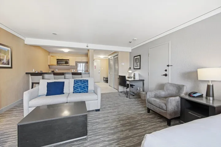 Steps from the base of both Whistler & Blackcomb gondolas, The Hilton Whistler Resort is Whistler’s only full owner use hotel-condo. Refurbished in 2019, this flexible, ‘lock-off’ floor plan is fully furnished w/ a king bed in 1 rm and 2 double beds in the other rm, with 2 full bathrooms, a pull-out couch, kitchen with range, fireplace & balcony with excellent southwest-facing views. This layout is perfect for the family looking for more use flexibility than other hotel-condos. Premier location while earning revenue. Use both sides or just one side while Hilton rents out the other side for you. On-site amenities include pool, gym, hot-tub, tennis courts, restaurant and sports bar. Hilton manages all rentals spinning off excellent revenue share to the owner. No AirBNB. No room remodeling.