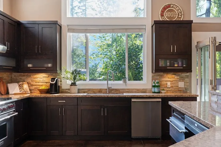 Discover refined West Coast living in this stunning Brackendale estate, privately tucked away on an exclusive road of just 5 homes. Inside, soaring coffered ceilings and an open layout highlight a chef’s kitchen with Sub Zero, Wolf, and Miele appliances, an oversized island, and seamless flow to the dining room, wet bar, and great room. Expansive covered decks and a landscaped yard create the perfect indoor-outdoor experience. Work from home in your private office with separate entrance and nanny suite offer flexibility for work or multi-generational living. Radiant in-floor heating, Sonos sound, polished concrete and hot water on demand elevate every detail. With 3 spacious bedrooms, walk-in closets, a 2 car garage, and a suite, this home is the pinnacle of Squamish luxury.