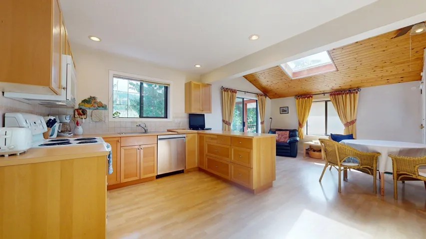 Looking for something a little unique? Look no further than 41343 Kingswood Rd where you’ll find a lovingly cared for detached home with 3 beds, 2 baths up and a 1 bed, 1 bath mortgage helper below. Features of this home include a wood buring fireplace upstairs, a propane stove below, newly replaced roof, french doors in the bedrooms leading to an almost 400 sq ft rear deck facing the lushly landscaped yard and backing onto a creek. The lot is fenced and has a double carport, open space for parking your RV or boat, a detached garage with additional exterior storage, and an outdoor shower and hot tub complete the package. Located in the quiet Eagle Run neighbourhood, you’re walking distance to cafes, schools, trails, and the river.