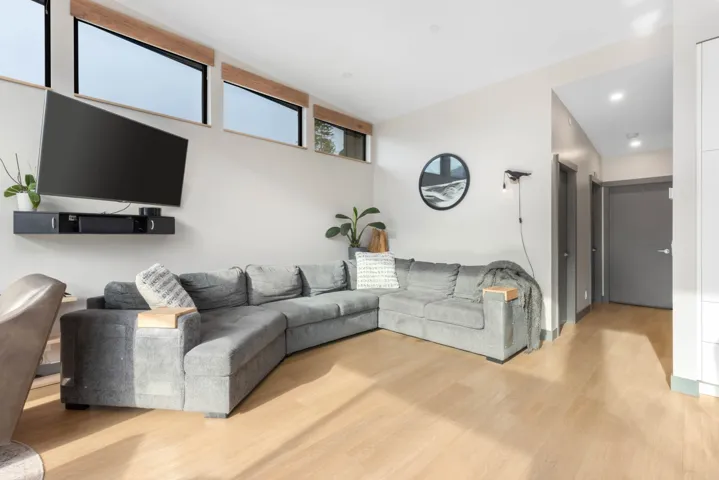 Welcome to Elevate. This spacious end-unit duplex sits in a superior location, offering privacy and unobstructed Mount Currie views. The open, bright main living area flows onto a generous view deck, while the lower level provides flexible space for work, play, or guests. The primary bedroom features a large walk-in closet with barn door and a luxe ensuite. Upgrades include glare-reducing window film that enhances privacy by limiting visibility from outside, premium solar and remote-controlled shades, oak window sills, and a ceiling fan. The kitchen offers an induction oven and newer dishwasher, with a pantry and wine cellar added under the stairs. Additional features include a fenced back patio, EV charger, and custom wooden garage shelving. Designed for comfort, and year-round living.