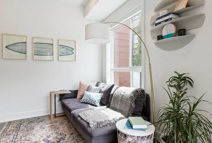 1 bedroom + den multi-level townhome in downtown Squamish. This incredibly unique property has a total of 3 decks including a large roof top deck with mountain views. Newly built building with modern floor plan, spacious kitchen with gas stove and large island. Steps away from the estuary trails, marina, oceanfront park and downtown restaurants and shops. The covered, secure parking spot is located conveniently right at the entrance to the lobby of the building, and there is in unit storage and 2 storage lockers.