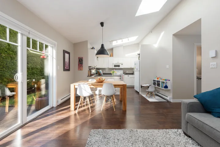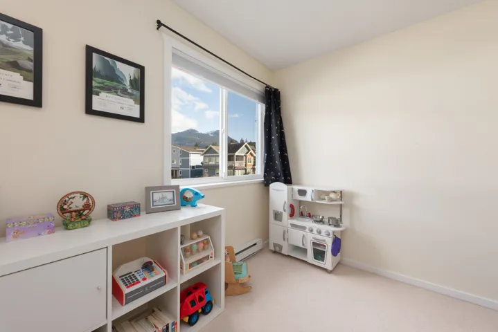 Welcome to this bright and inviting 3 bed, 1.5 bath townhouse in a very family-friendly complex in the heart of Squamish. The main floor features a classic white kitchen, warm wood floors, vaulted ceilings with skylights, a cozy gas fireplace, and plenty of natural light. Step outside to your private walk-out yard, perfect for relaxing or entertaining. Upstairs offers large bedrooms including a spacious primary with walk-in closet and convenient same-floor laundry. Enjoy stunning mountain views and a double side-by-side garage. Located just steps to a popular park and playground, close to the Mamquam River’s best trails and fishing spots, and within walking distance to the shops and restaurants of Garibaldi Village.