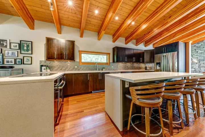 Boasting a secluded setting in Emerald Estates, 9557 Emerald Drive is a striking West Coast contemporary retreat where architectural elegance meets the tranquility of nature. Designed by Wexler, this 4.5 bed/4 bath home blends rich wood, stone, and Japanese hardwood floors, creating a refined yet inviting atmosphere. The expansive great room, with exposed beams and a wood-burning fireplace, frames Whistler forest & mountain views, offering the perfect setting for relaxation. The gourmet kitchen opens to sun-drenched decks, ideal for alfresco dining & entertaining. With a private hot tub, two-car garage, abundant storage, and a versatile suite, this home provides a peaceful escape nestled against the untouched wilderness of Rainbow Mountain, offering both privacy & luxury in equal measure.
