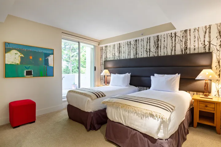 Live steps from the slopes in this two-bedroom ground floor residence in Woodrun Lodge, where ski-run views and direct access combine comfort and convenience. After a day outdoors, unwind in the spacious living area with a gas fireplace, prepare meals with ease in the well-appointed kitchen, or take in the fresh mountain air from either of the private patios. The suite also includes the convenience of in-suite laundry. Woodrun Lodge offers practical on-site features including a hot tub, outdoor pool, and fitness room—all just a short stroll from Whistler’s Upper Village. Zoned for Phase I, the property allows for unlimited personal use and nightly rentals.