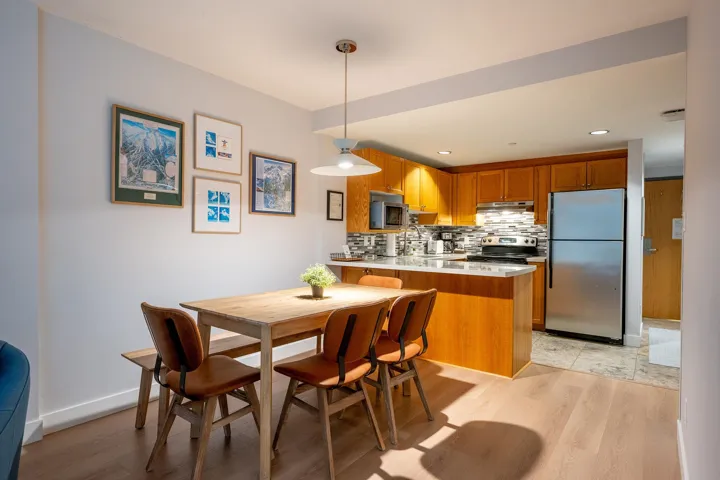 The Woodrun complex offers owners & guests ski-in/ski-out access at its finest – no walking or bus rides required! After a day on the slopes, relax in the outdoor hot tub or enjoy swimming in the heated outdoor pool or if you still have the energy you can hit the full size gym; all of which are first class amenities offered by the Woodrun. Flexible phase 1 zoning allows owners to rent on a short term (nightly/weekly) or long term basis or you can use for your own personal enjoyment as much as you desire. 312 Woodrun is a wonderful updated 1 bedroom + den, 2 bathroom unit that is 792 sq/ft in size, which offers ample room whether you call it your part time or full time home! ski-in/ski-out property before next ski season!