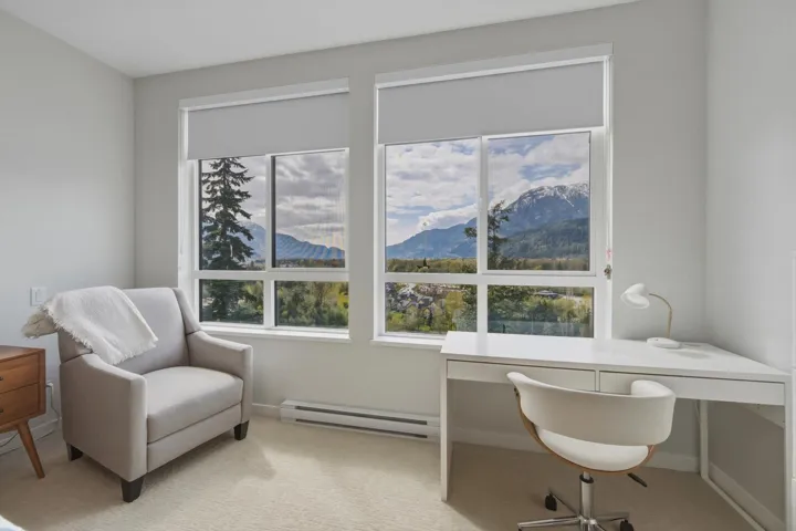 Uninterrupted west-facing views define this exceptional half-duplex, offering a bright, open-concept interior centered around a gourmet kitchen w/ premium SS appliances and sliding glass doors onto private balcony.9.5’ ceilings and oversized windows flood the home w/ natural light, enhancing the seamless indoor-outdoor connection.The upper level features three spacious bedrooms and three beautifully appointed bathrooms, including a luxurious primary retreat.The lower level offers a media/recreation rm w/ a full bath and walk-out patio to a fenced grass area and garden.Complete w/ a double garage w/ EV charger and epoxy floors, ideally located steps to world-class trails and forest walks. Immaculately maintained and lightly lived in! OPEN HOUSE SATURDAY APRIL 25TH 11:30AM – 1PM . NO GST